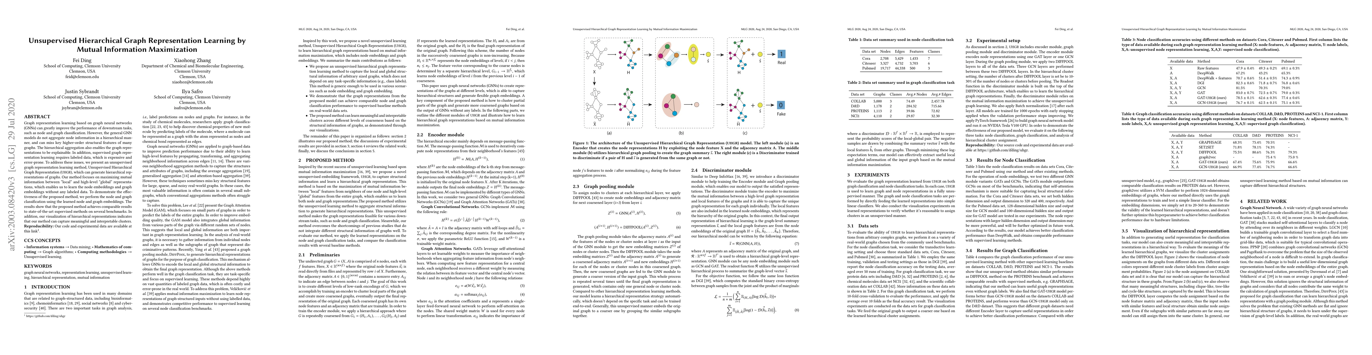 The research uses a combination of graph neural networks and information maximization to learn hierarchical representations of graphs.
