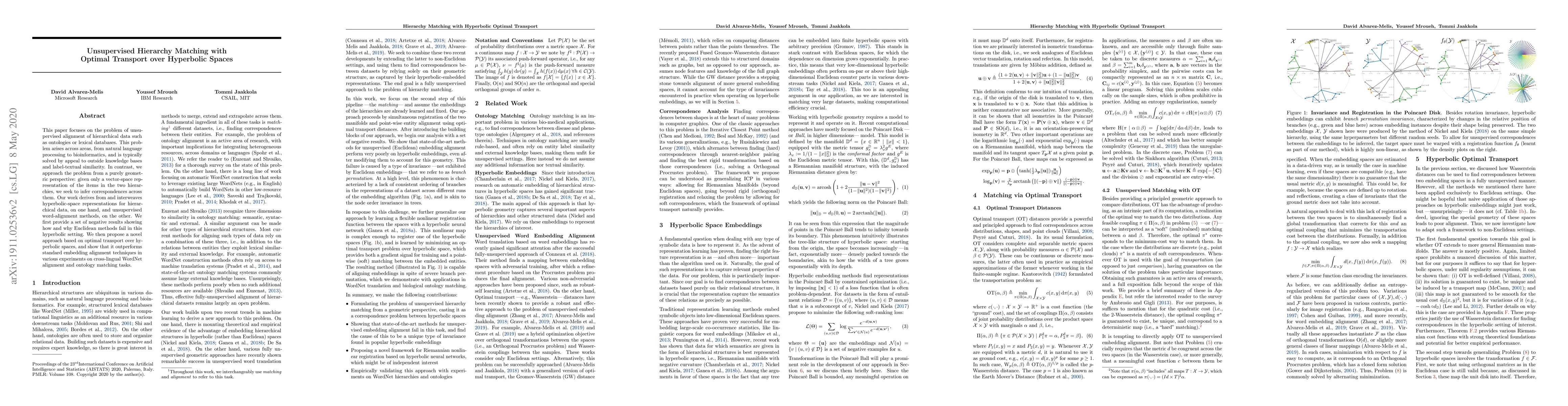 This paper proposes a novel approach to unsupervised hierarchy matching using optimal transport over hyperbolic spaces, outperforming traditional methods in cross-lingual WordNet alignment and ontology matching tasks.
