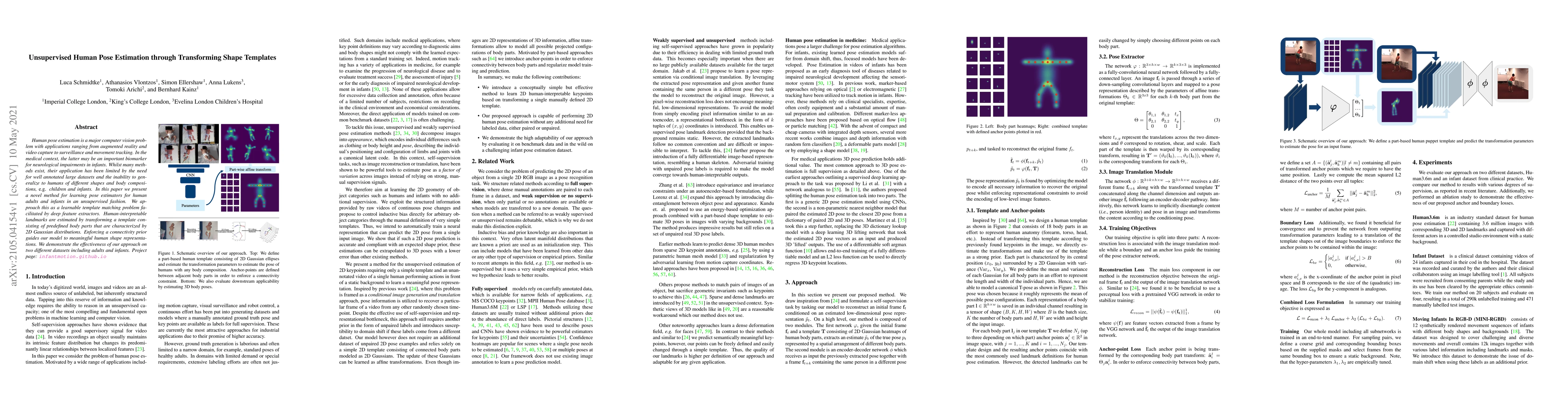 This paper introduces a novel unsupervised method for human pose estimation using deep feature extractors to transform shape templates characterized by 2D Gaussian distributions. The method effectively estimates human-interpretable landmarks and generalizes to both adults and infants, addressing the challenge of lacking large annotated datasets.