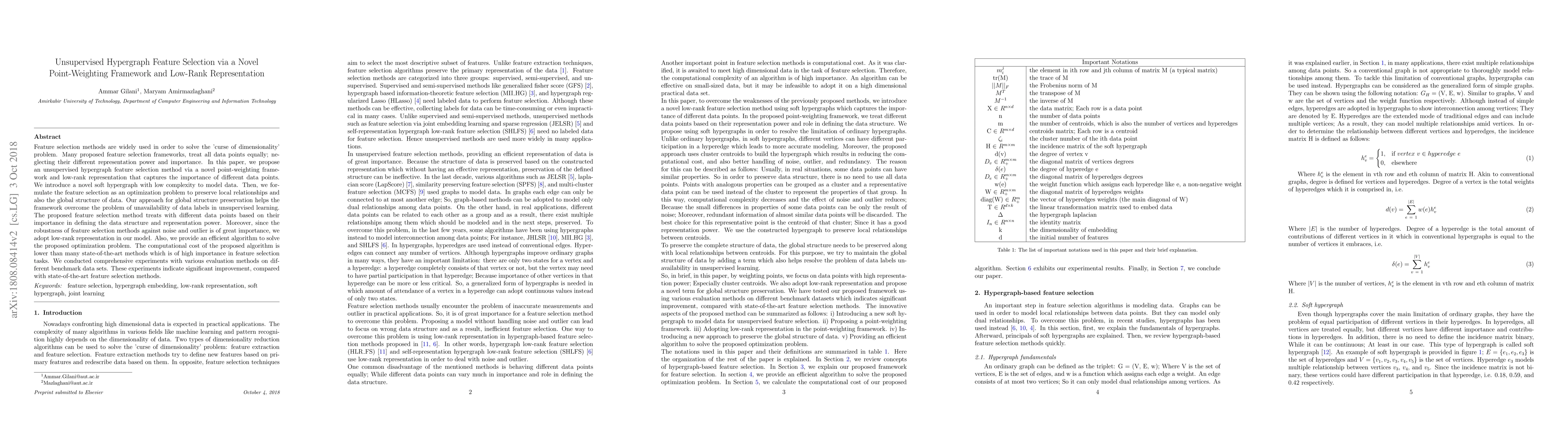 This paper proposes an unsupervised hypergraph feature selection method that uses a novel point-weighting framework and low-rank representation to account for the varying importance of data points. The method effectively captures local relationships and global data structure, demonstrating significant improvement over state-of-the-art methods in benchmark experiments.