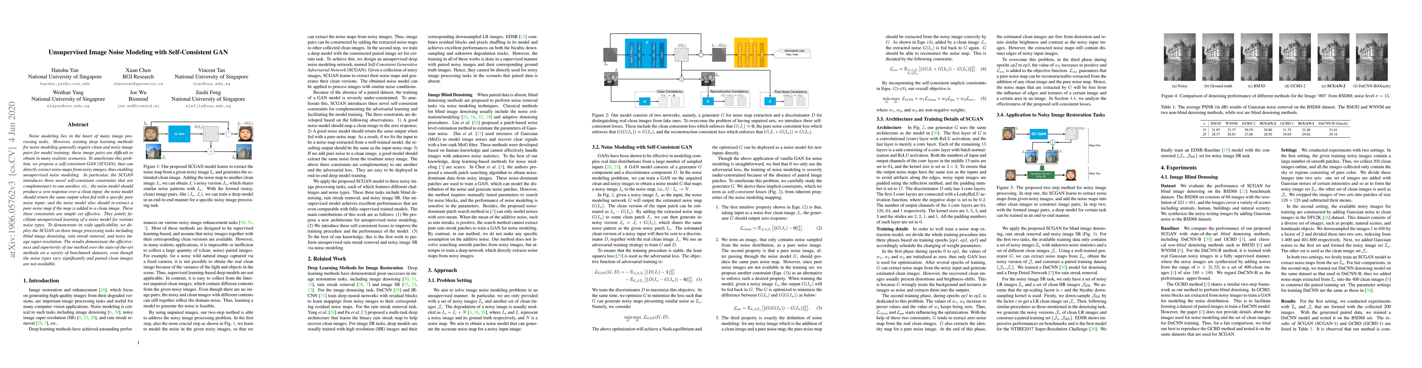 Researchers propose a self-consistent GAN (SCGAN) for unsupervised image noise modeling, enabling direct extraction of noise maps from noisy images without paired clean-noisy data.
