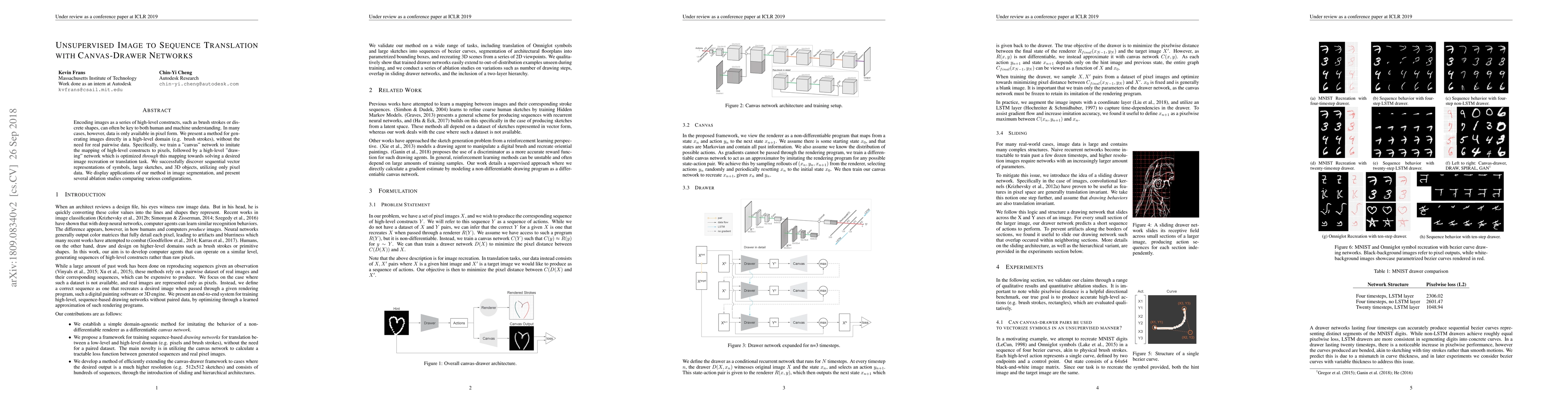 Encoding images as a series of high-level constructs, such as brush strokes or discrete shapes, can often be key to both human and machine understanding. In many cases, however, data is only available in pixel form. We present a method for generating images directly in a high-level domain (e.g. brush strokes), without the need for real pairwise data. Specifically, we train a "canvas" network to imitate the mapping of high-level constructs to pixels, followed by a high-level "drawing" network which is optimized through this mapping towards solving a desired image recreation or translation task. We successfully discover sequential vector representations of symbols, large sketches, and 3D objects, utilizing only pixel data. We display applications of our method in image segmentation, and present several ablation studies comparing various configurations.