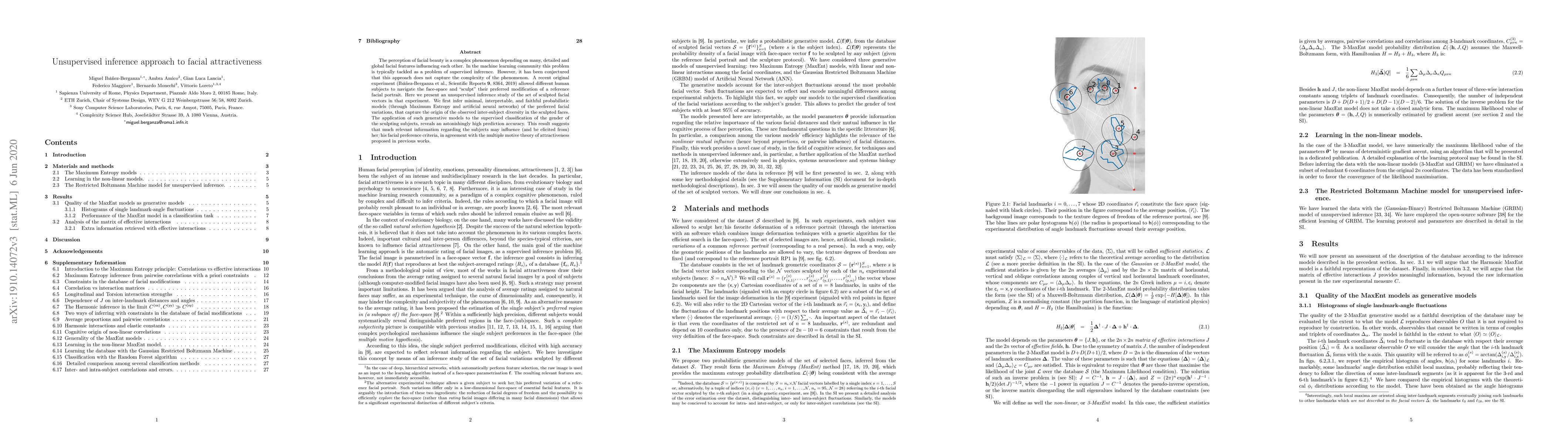 This study applies unsupervised inference methods, like Maximum Entropy and artificial neural networks, to analyze facial preference data from human subjects. The results indicate that preferred facial modifications contain information about the individuals' gender, supporting the theory that attractiveness perception involves multiple motives.