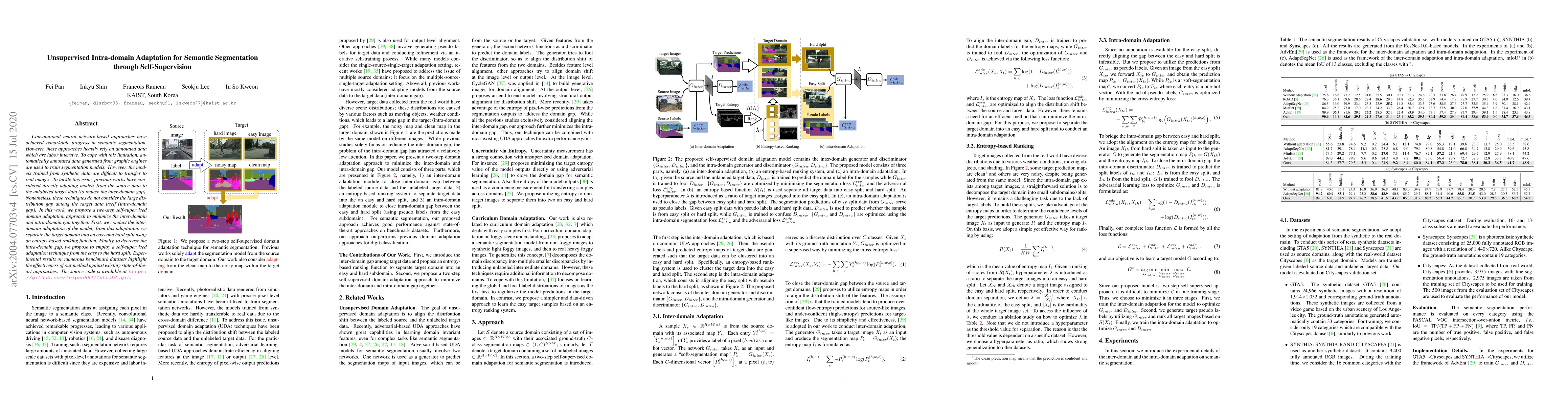 This paper proposes an unsupervised intra-domain adaptation method for semantic segmentation using self-supervision to bridge the gap between synthetic and real data. The approach first adapts the model to the target domain, then employs self-supervision to further reduce the intra-domain gap, achieving superior performance on benchmark datasets.