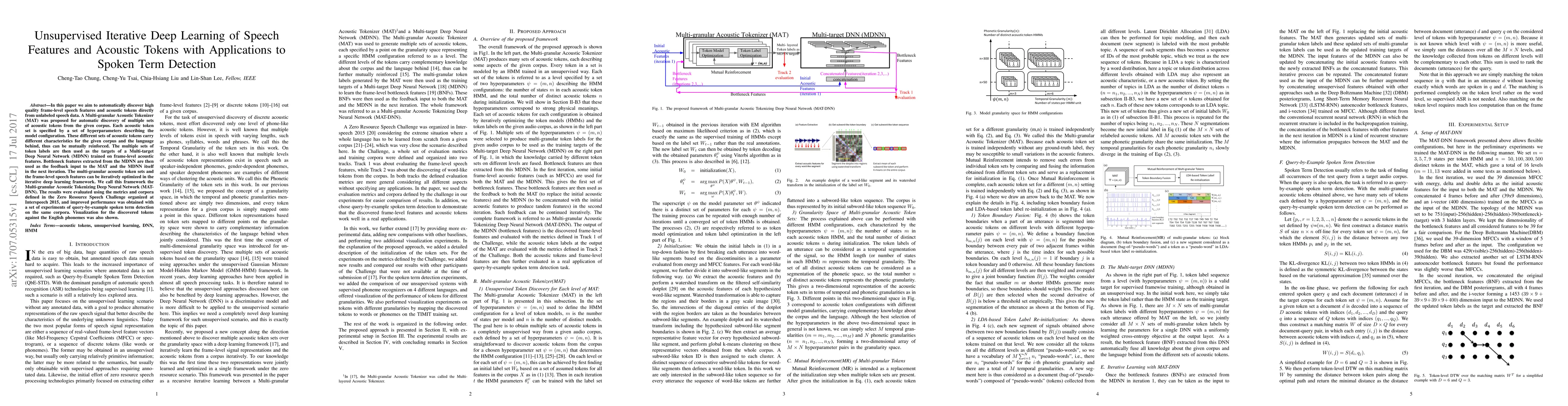 This paper proposes an unsupervised iterative deep learning framework called MATDNN to automatically discover high-quality speech features and acoustic tokens from unlabeled speech data, achieving improved performance in spoken term detection. The Multi-granular Acoustic Tokenizer (MAT) and Multi-target Deep Neural Network (MDNN) iteratively refine each other, leading to better feature extraction and token discovery.