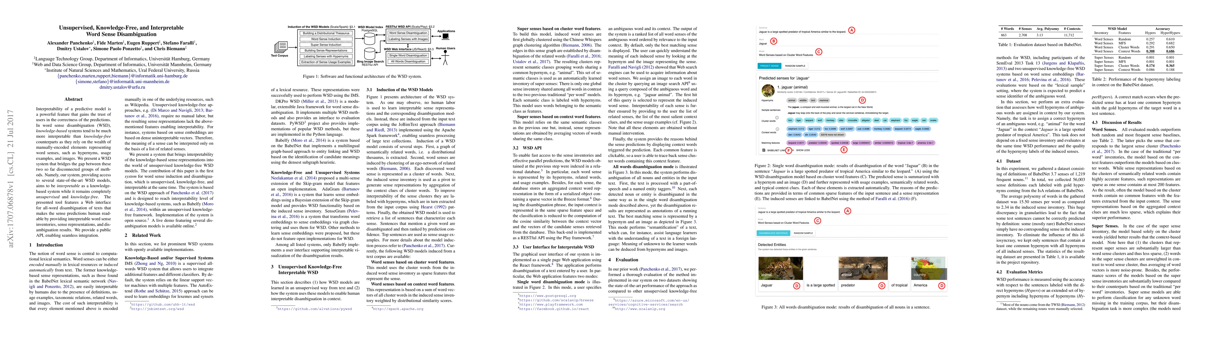 This paper presents an unsupervised, knowledge-free word sense disambiguation system that achieves interpretability similar to knowledge-based methods by providing human-readable sense inventories and representations, bridging the gap between interpretable and non-interpretable WSD approaches. The system offers a web interface and API for easy integration.