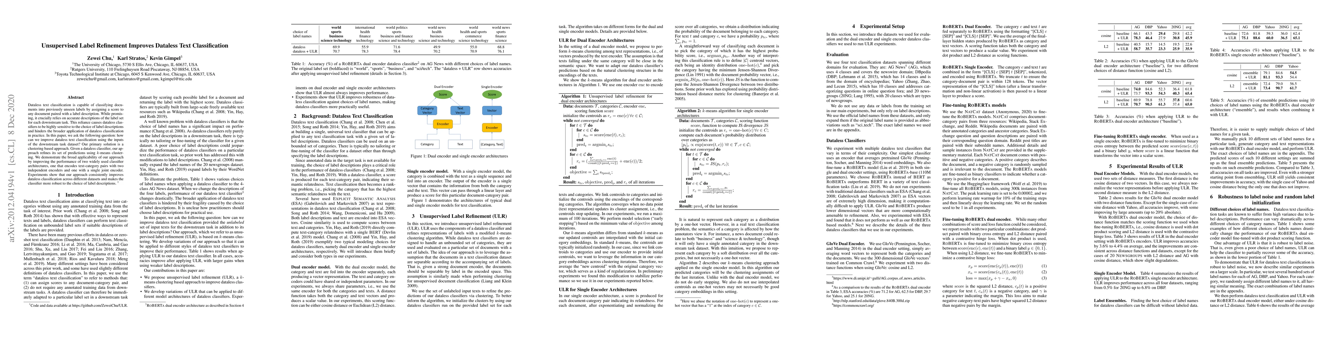 This paper proposes an unsupervised label refinement method using k-means clustering to enhance dataless text classification, which relies on label descriptions rather than labeled data. The method improves classifier performance and robustness by refining predictions based on downstream task datasets, demonstrating effectiveness across different architectures.