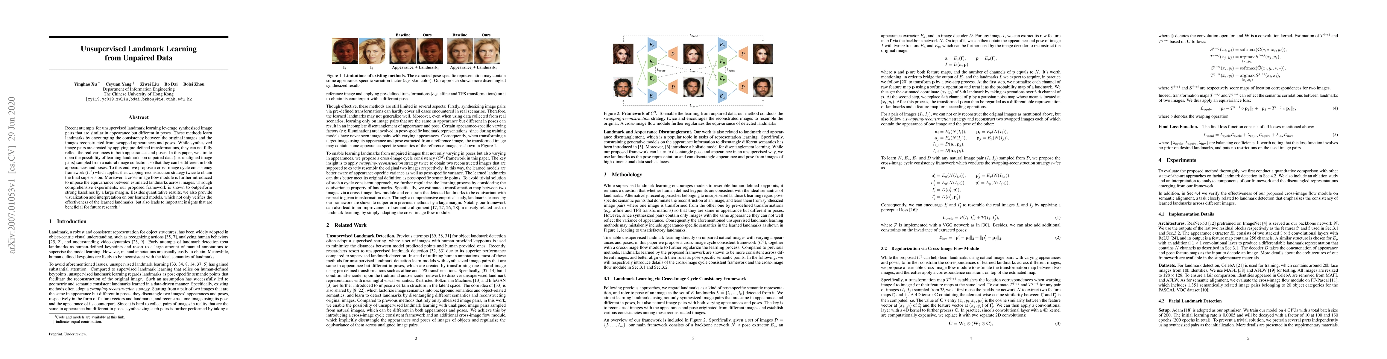 A new method for unsupervised landmark learning is proposed, which uses unpaired data from natural images to learn landmarks that vary in both appearance and pose. The approach outperforms strong baselines with significant margins.