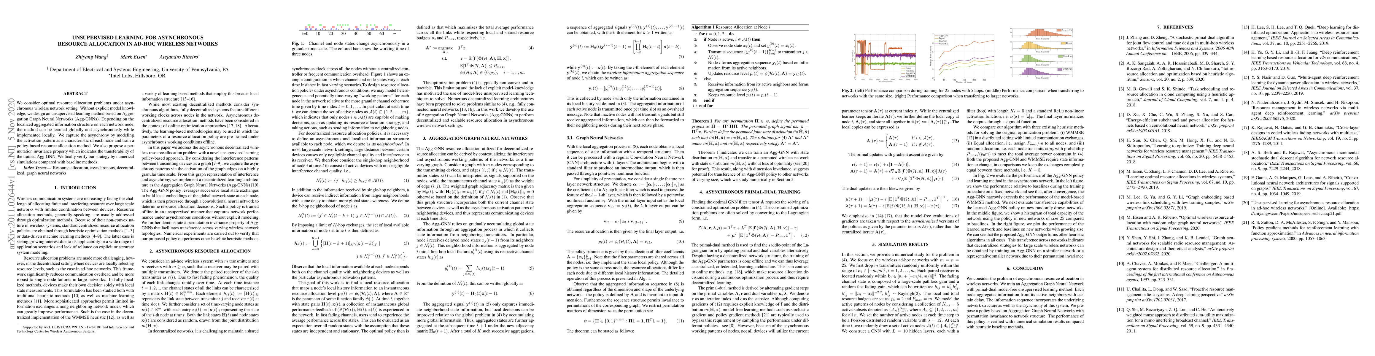 Researchers develop an unsupervised learning method for resource allocation in ad-hoc wireless networks, leveraging Aggregation Graph Neural Networks to learn globally and asynchronously while handling node-specific activation patterns.
