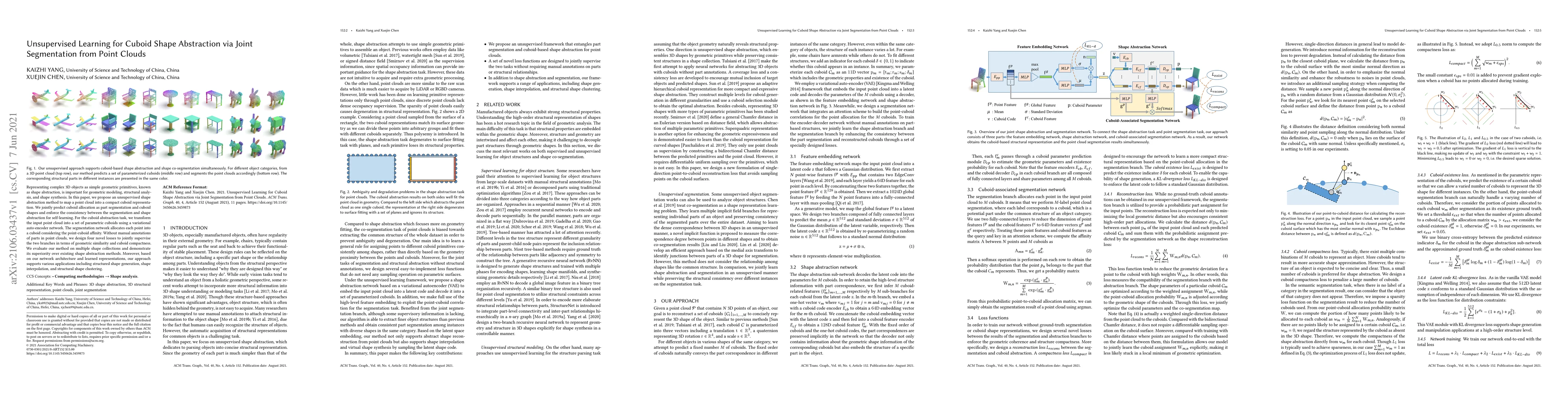 This paper proposes an unsupervised method for cuboid shape abstraction from point clouds, using joint segmentation and cuboid shape prediction. The approach employs a variational auto-encoder and segmentation network, with novel losses to ensure consistency, and demonstrates superior performance over existing methods in various applications.