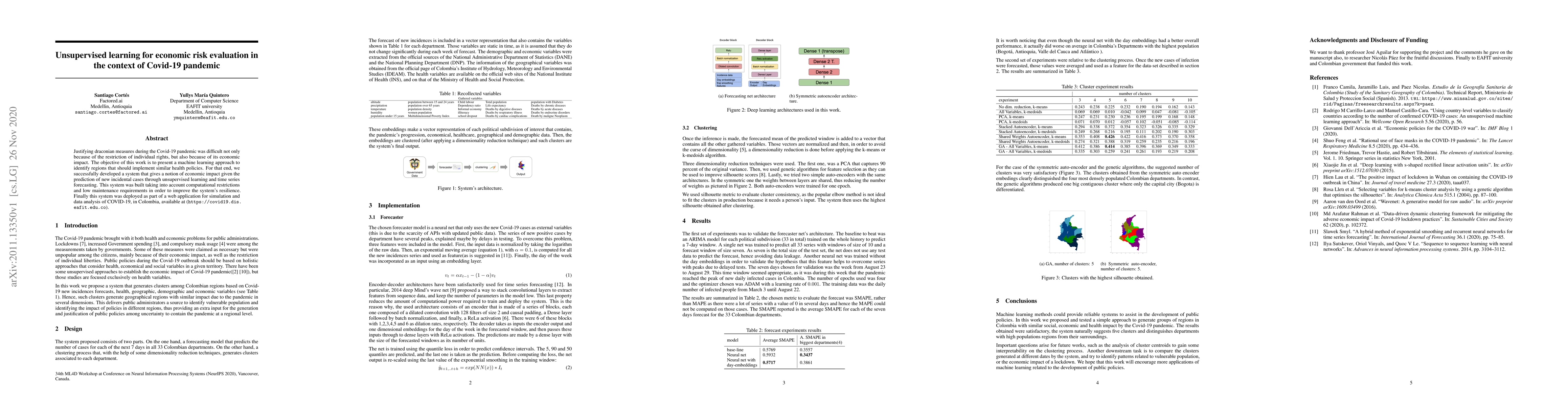 A machine learning approach was developed to predict economic impact of COVID-19 policies in regions, using unsupervised learning and time series forecasting. The system was deployed as a web application for simulation and analysis in Colombia.