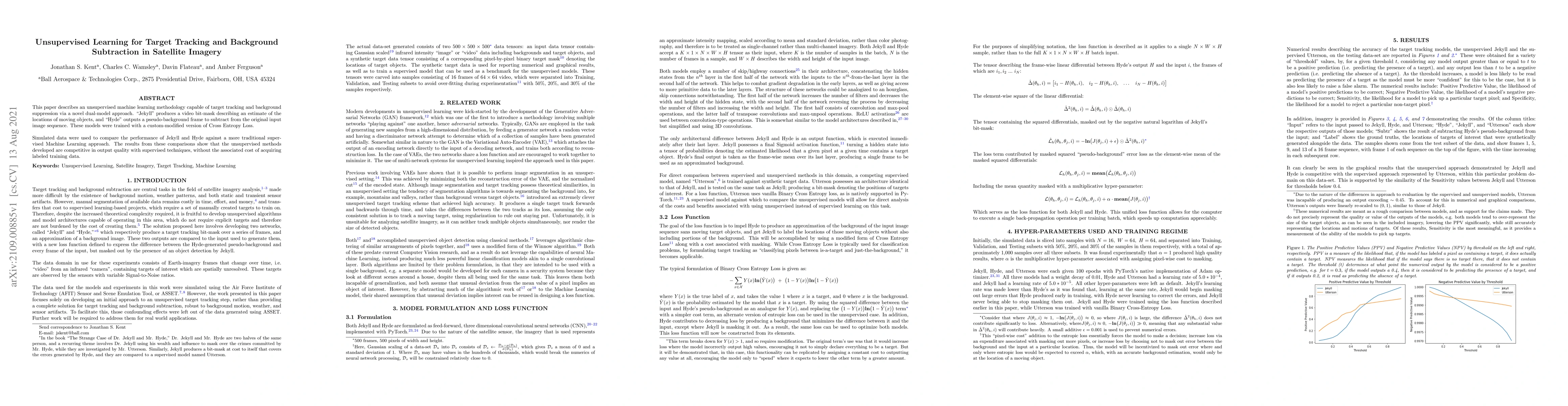 This paper describes an unsupervised machine learning methodology capable of target tracking and background suppression via a novel dual-model approach. ``Jekyll`` produces a video bit-mask describing an estimate of the locations of moving objects, and ``Hyde`` outputs a pseudo-background frame to subtract from the original input image sequence. These models were trained with a custom-modified version of Cross Entropy Loss. Simulated data were used to compare the performance of Jekyll and Hyde against a more traditional supervised Machine Learning approach. The results from these comparisons show that the unsupervised methods developed are competitive in output quality with supervised techniques, without the associated cost of acquiring labeled training data.