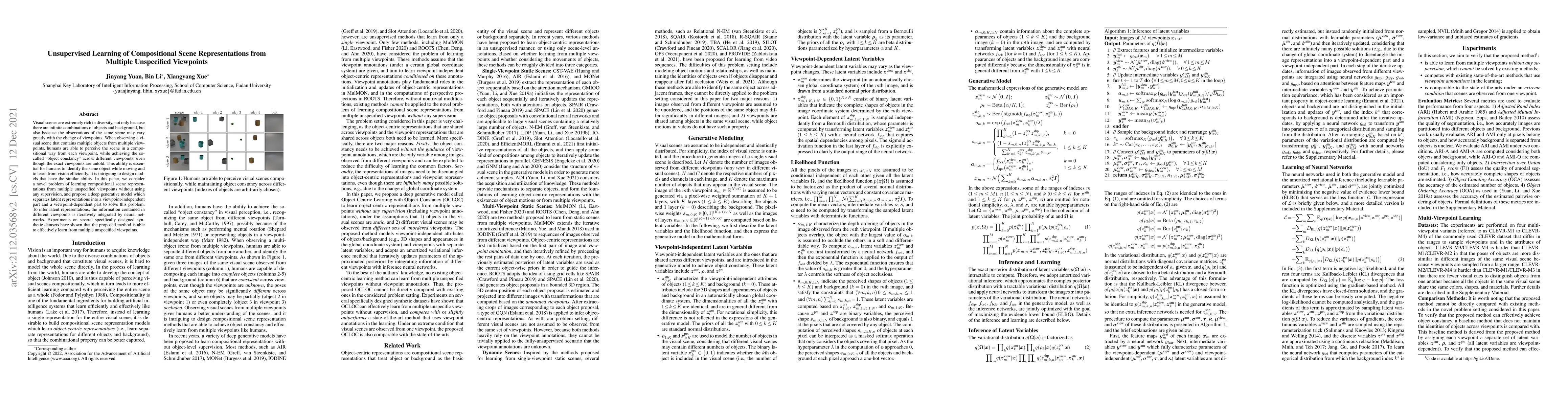This paper proposes a deep generative model to learn compositional scene representations from multiple unspecified viewpoints without supervision. It separates latent representations into viewpoint-independent and viewpoint-dependent parts, iteratively integrating information from different viewpoints to infer latent representations. Experiments on synthetic datasets demonstrate the model's effectiveness.