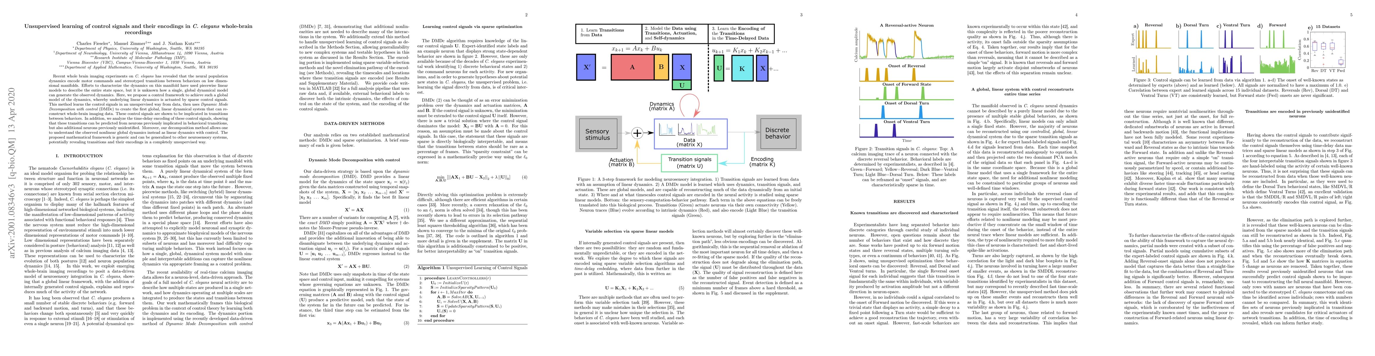 Researchers developed an unsupervised method to learn control signals for C. elegans whole-brain recordings, revealing transitions between behaviors and predicting them with previously unidentified neurons.