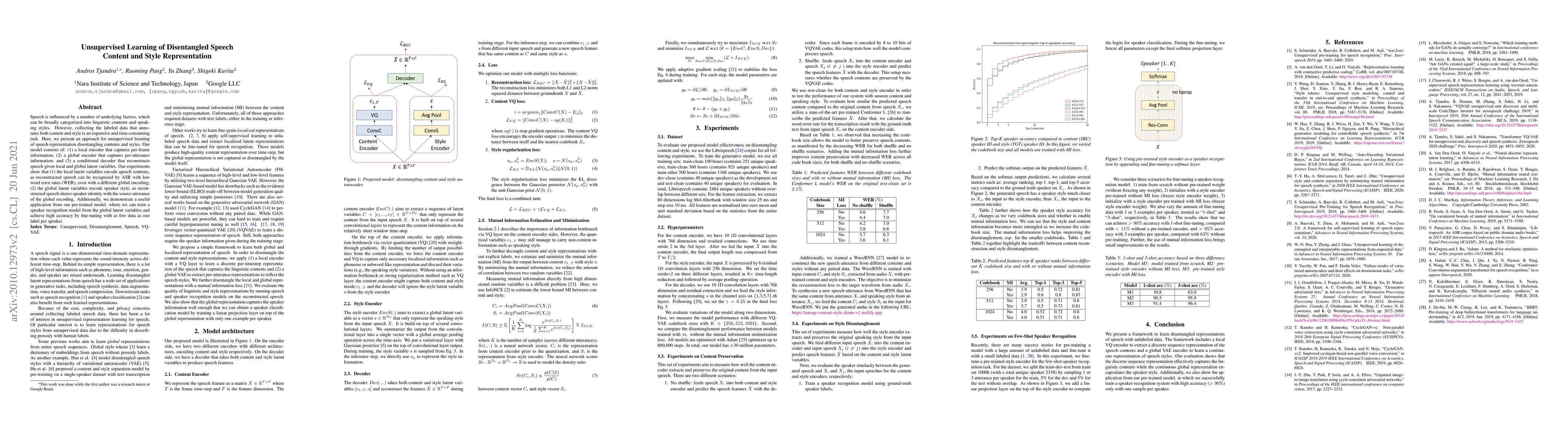 Researchers developed an unsupervised learning model that disentangles speech content and style, enabling accurate recognition of speech with different styles and speaker identities. The model can also serve as a foundation for speaker recognition systems with limited training data.