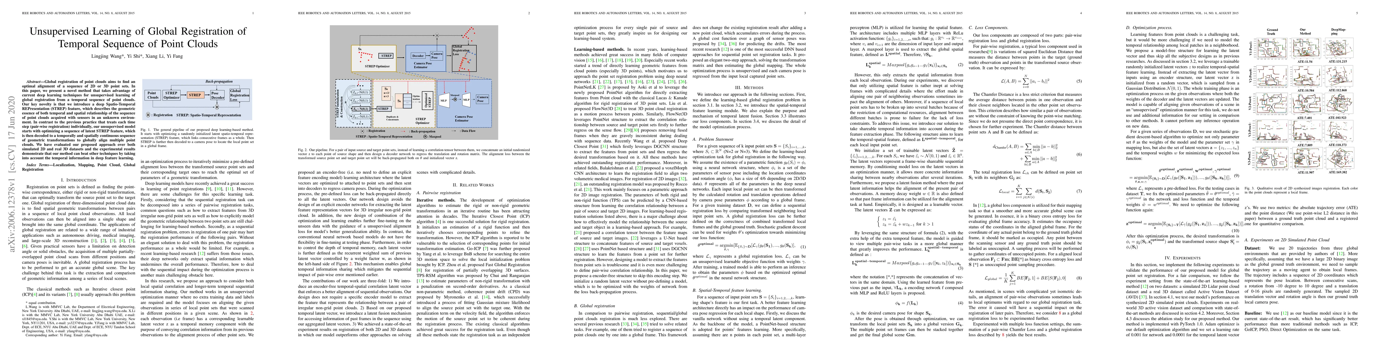 Global registration of point clouds aims to find an optimal alignment of a sequence of 2D or 3D point sets. In this paper, we present a novel method that takes advantage of current deep learning techniques for unsupervised learning of global registration from a temporal sequence of point clouds. Our key novelty is that we introduce a deep Spatio-Temporal REPresentation (STREP) feature, which describes the geometric essence of both temporal and spatial relationship of the sequence of point clouds acquired with sensors in an unknown environment. In contrast to the previous practice that treats each time step (pair-wise registration) individually, our unsupervised model starts with optimizing a sequence of latent STREP feature, which is then decoded to a temporally and spatially continuous sequence of geometric transformations to globally align multiple point clouds. We have evaluated our proposed approach over both simulated 2D and real 3D datasets and the experimental results demonstrate that our method can beat other techniques by taking into account the temporal information in deep feature learning.