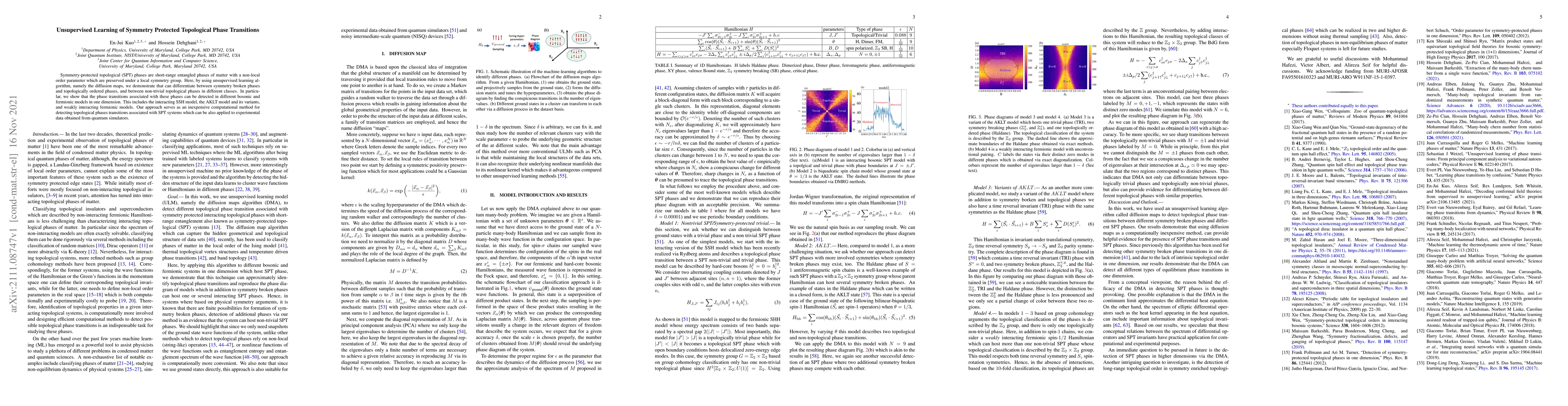 This paper uses unsupervised learning, specifically diffusion maps, to distinguish between symmetry-protected topological phases and symmetry broken phases in various quantum models, including the SSH and AKLT models, demonstrating a cost-effective method for detecting topological phase transitions in both theoretical and experimental quantum systems.
