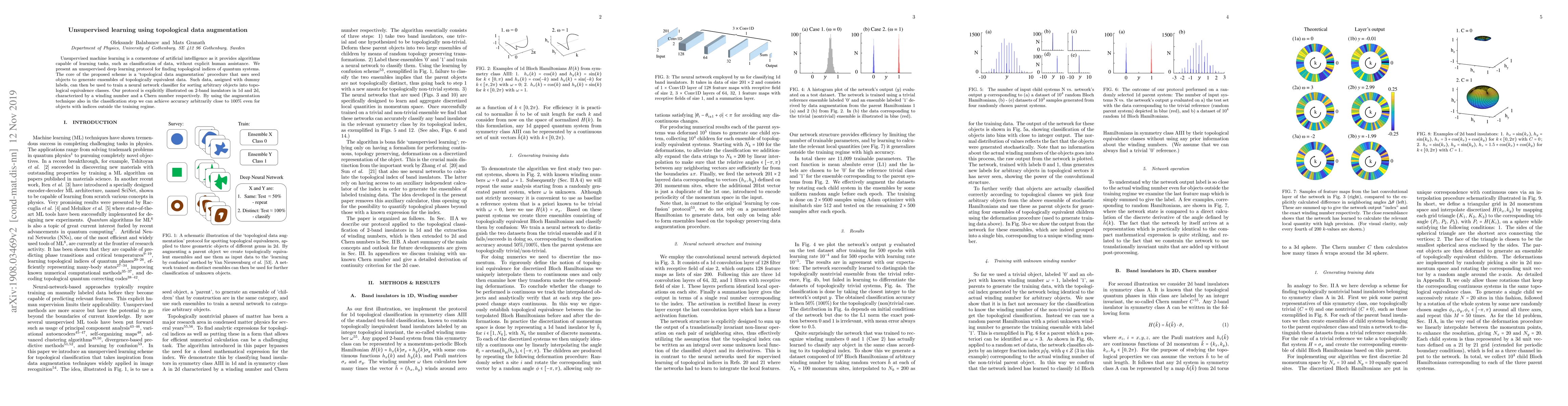 This paper introduces an unsupervised deep learning method for classifying quantum systems using topological data augmentation. The method generates ensembles of topologically equivalent data from seed objects, which are then used to train a neural network classifier, achieving nearly perfect classification accuracy even for unseen topological indices.