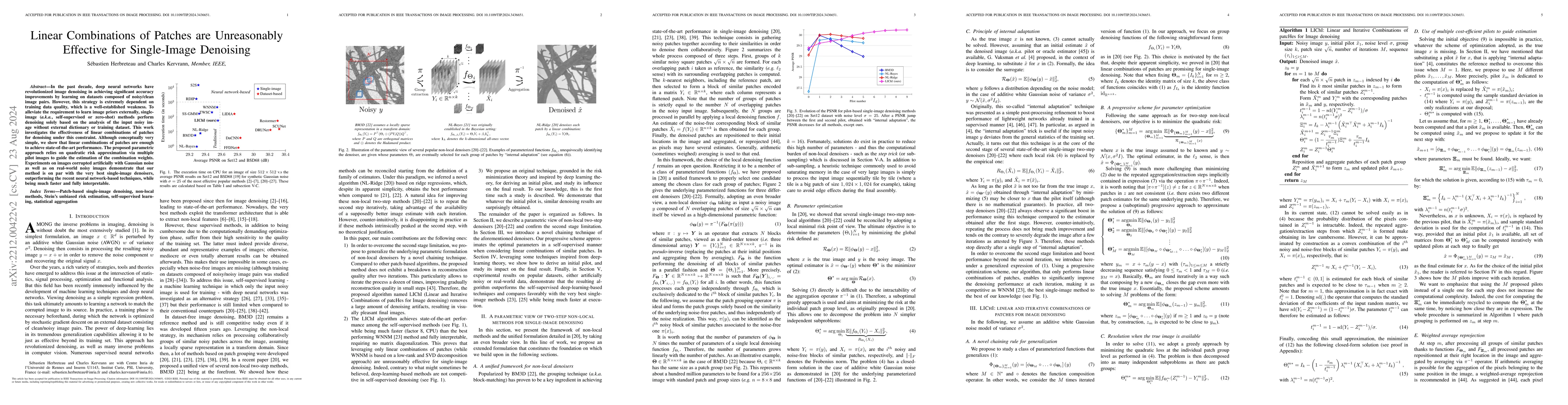 This paper proposes an unsupervised iterative method for image denoising, extending the parametric formulation of non-local two-step denoisers like BM3D. The method uses quadratic risk minimization and iterative linear combinations of patches to achieve superior denoising performance compared to existing unsupervised and deep-learning-based approaches, while maintaining faster processing speeds.
