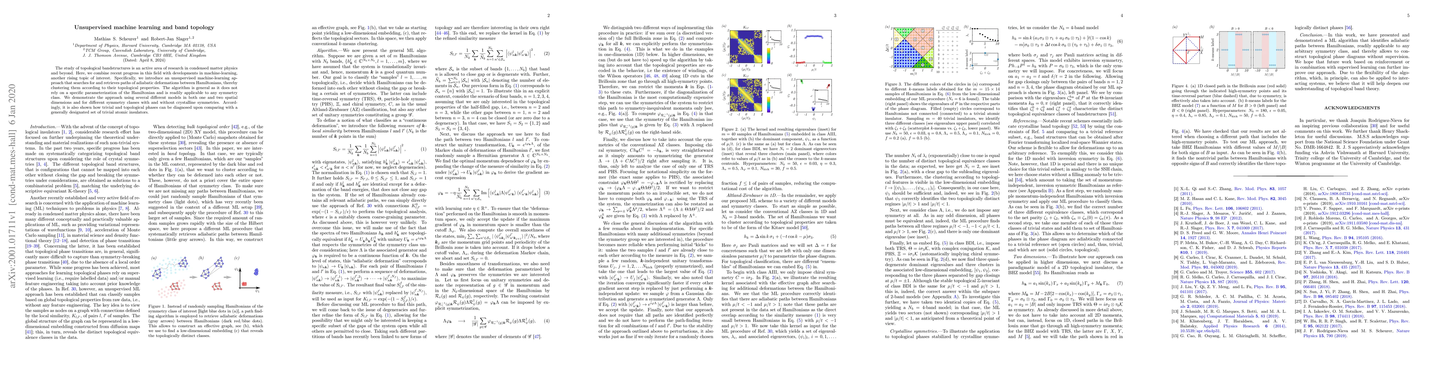 Researchers developed an unsupervised machine-learning approach to classify topological bandstructures in condensed matter physics, identifying both trivial and topological phases with high accuracy.