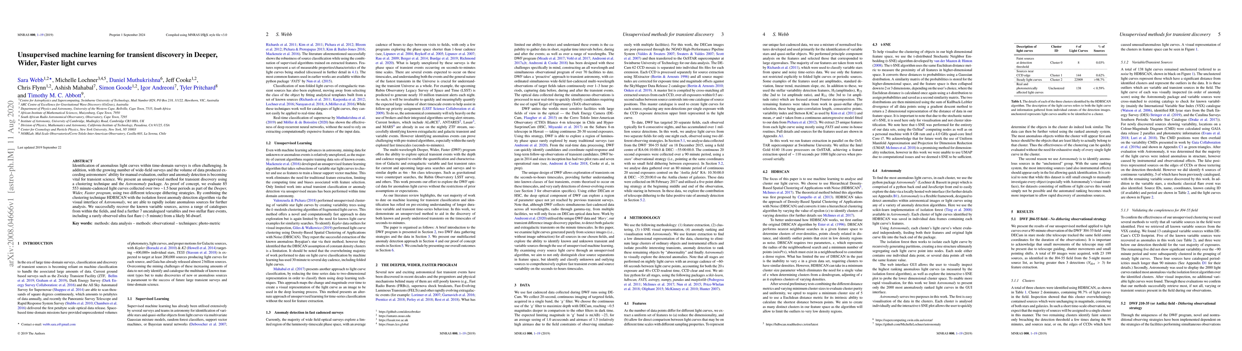 This paper introduces an unsupervised machine learning method for discovering transient anomalies in light curves from the Deeper, Wider, Faster program. The method combines HDBSCAN clustering and isolation forest anomaly detection, successfully identifying known variables and uncovering seven uncatalogued variables and two stellar flare events.