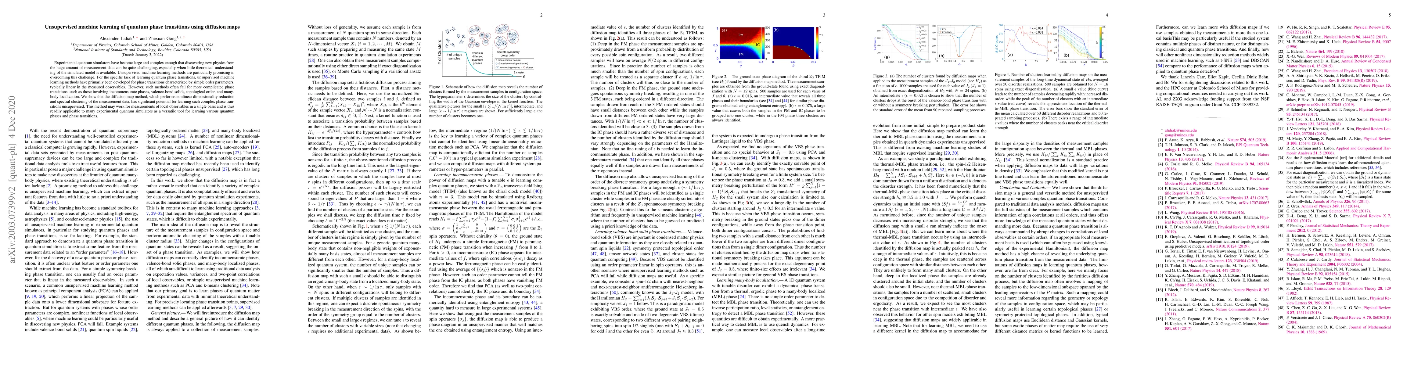 This paper explores the use of diffusion maps for unsupervised machine learning to identify complex quantum phase transitions in large experimental quantum simulator datasets, where traditional methods fail. The diffusion map method offers a versatile tool for discovering various quantum phases and transitions without relying on simple order parameters.