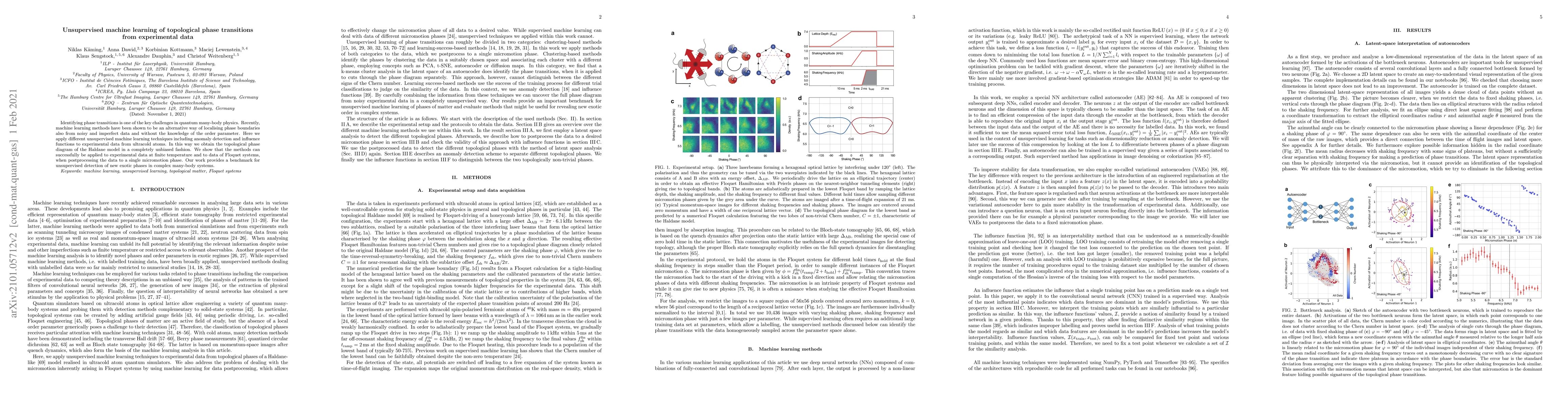 Identifying phase transitions is one of the key challenges in quantum many-body physics. Recently, machine learning methods have been shown to be an alternative way of localising phase boundaries also from noisy and imperfect data and without the knowledge of the order parameter. Here we apply different unsupervised machine learning techniques including anomaly detection and influence functions to experimental data from ultracold atoms. In this way we obtain the topological phase diagram of the Haldane model in a completely unbiased fashion. We show that the methods can successfully be applied to experimental data at finite temperature and to data of Floquet systems, when postprocessing the data to a single micromotion phase. Our work provides a benchmark for unsupervised detection of new exotic phases in complex many-body systems.