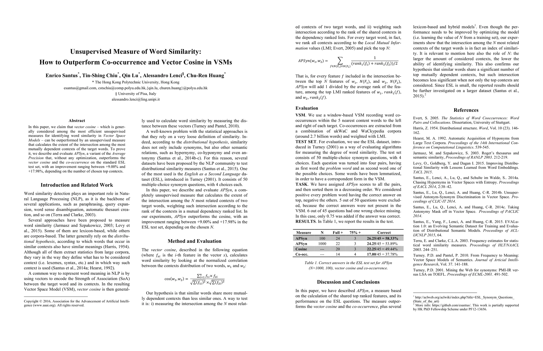 In this paper, we claim that vector cosine, which is generally considered among the most efficient unsupervised measures for identifying word similarity in Vector Space Models, can be outperformed by an unsupervised measure that calculates the extent of the intersection among the most mutually dependent contexts of the target words. To prove it, we describe and evaluate APSyn, a variant of the Average Precision that, without any optimization, outperforms the vector cosine and the co-occurrence on the standard ESL test set, with an improvement ranging between +9.00% and +17.98%, depending on the number of chosen top contexts.