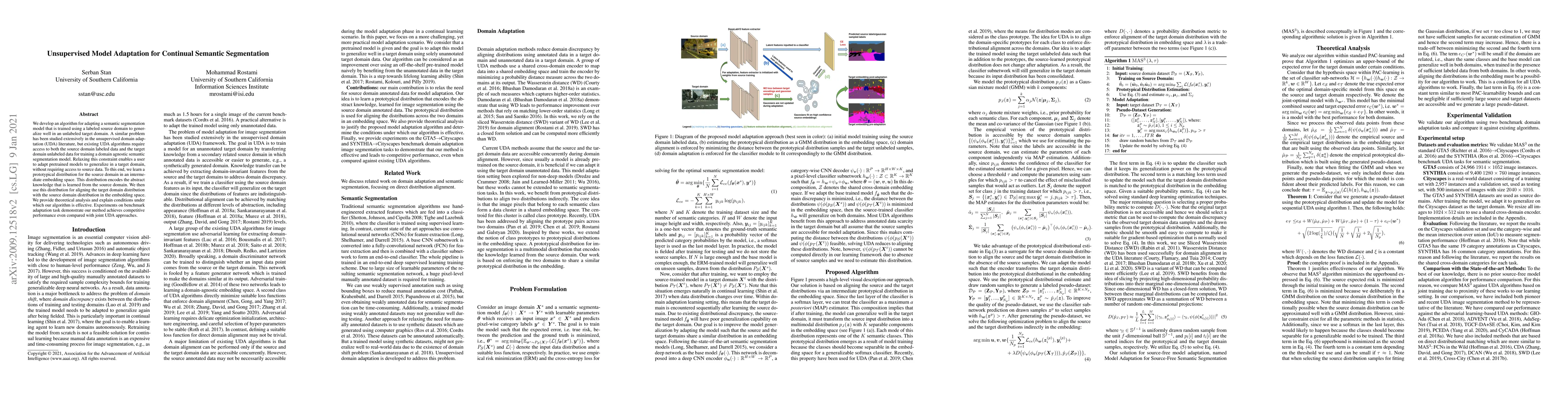 This paper proposes an unsupervised model adaptation algorithm for semantic segmentation, enabling pretrained models to generalize to new, unlabeled target domains without requiring source domain data. The method aligns target domain distributions with a learned prototypical distribution from the source domain in an intermediate embedding space, achieving competitive performance in experiments.