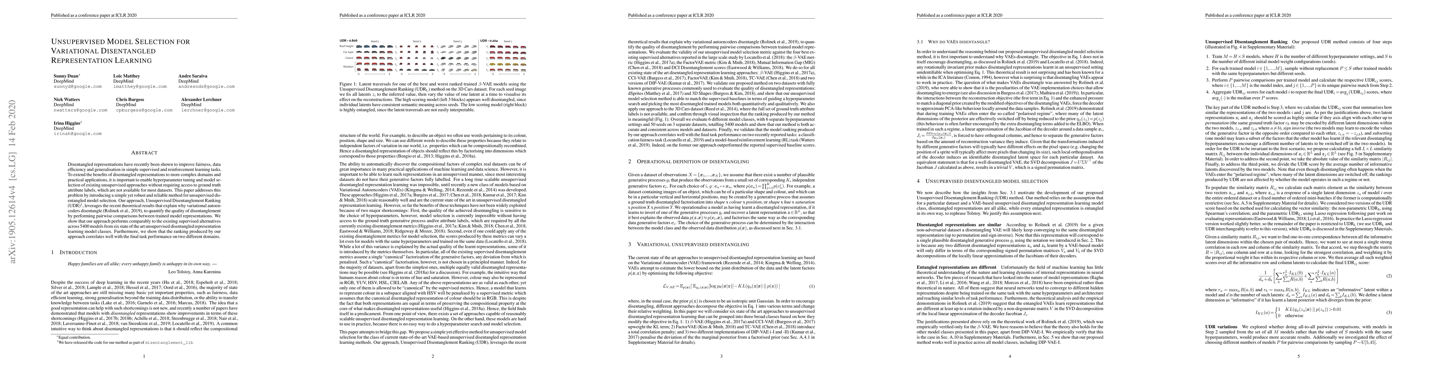 This paper presents Unsupervised Disentanglement Ranking (UDR), a method for selecting the best disentangled representation models without ground truth labels, leveraging theoretical insights into variational autoencoders. The approach performs comparably to supervised methods and correlates well with task performance across various domains.