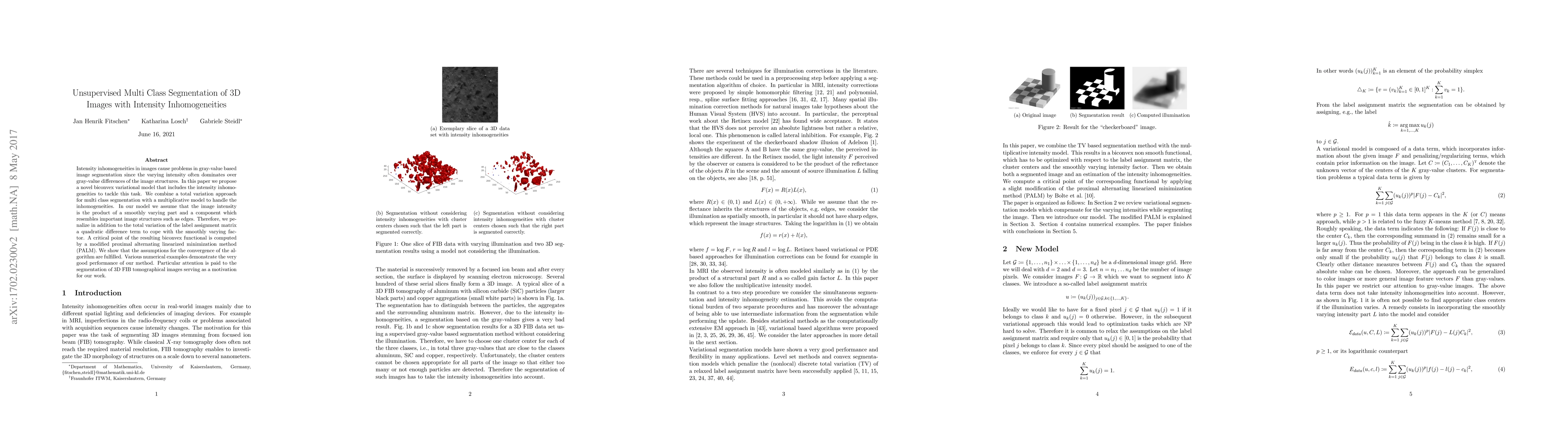This paper proposes a new method for segmenting 3D images with intensity inhomogeneities, combining total variation approach and multiplicative model to handle inhomogeneities and achieving good performance.