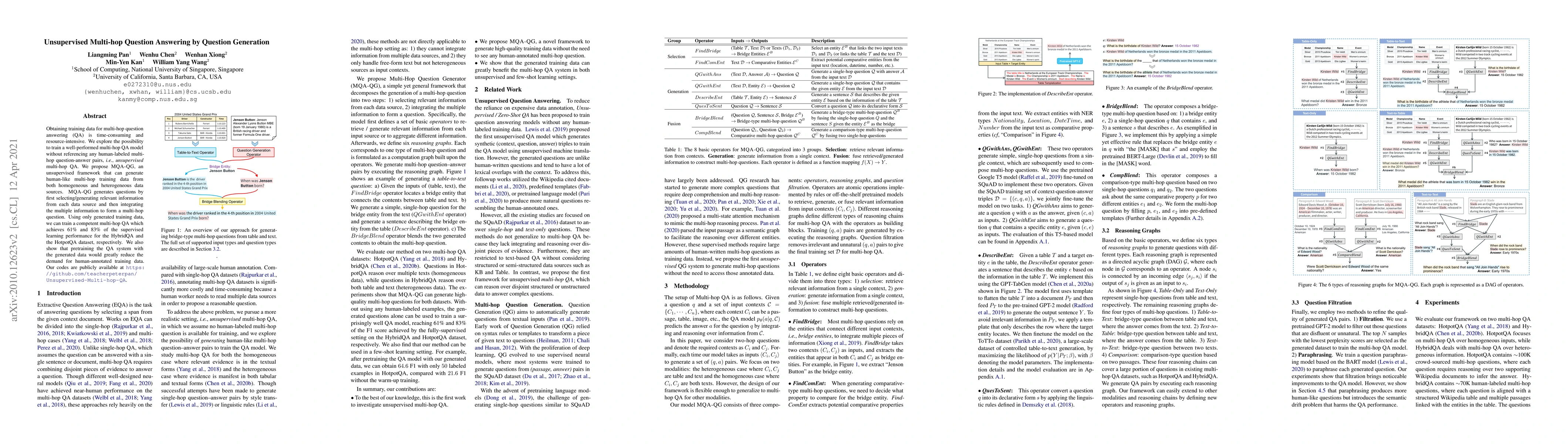 The paper proposes MQA-QG, an unsupervised framework for multi-hop question answering that generates training data without human-labeled pairs. It achieves significant performance in comparison to supervised models, reducing reliance on annotated data and showing potential for large-scale applications.