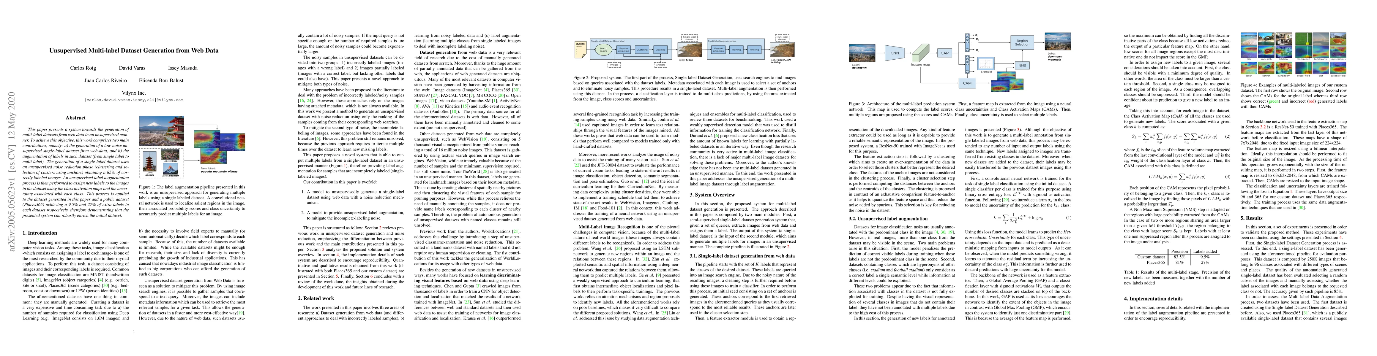 This paper introduces a system for generating multi-label datasets from web data without supervision, achieving 85% accuracy in single-label dataset creation and augmenting labels by 9.5% and 27% in two datasets, demonstrating robust dataset enrichment.