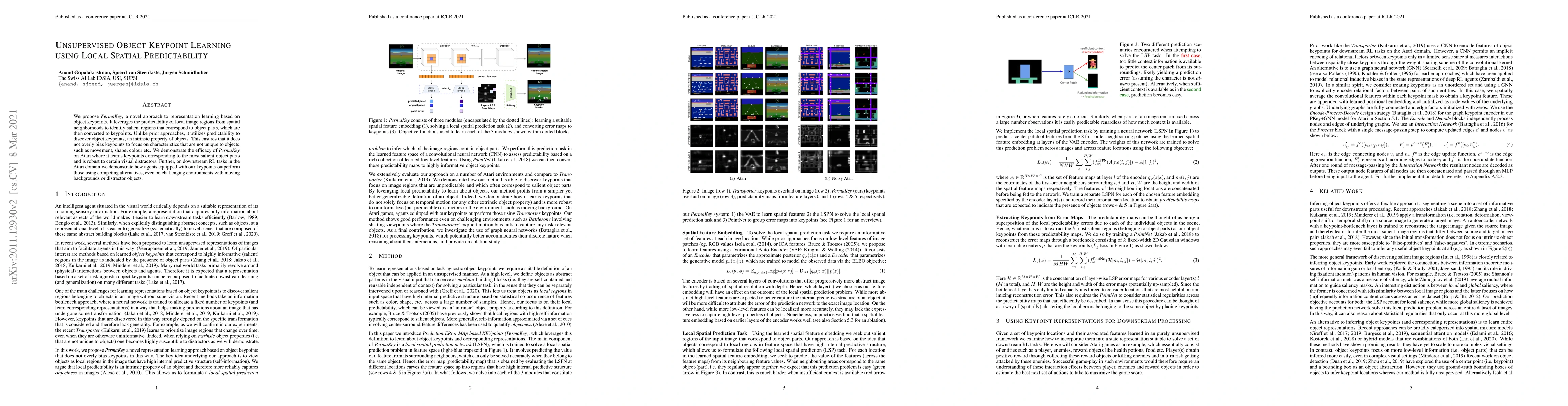 We propose PermaKey, a novel approach to representation learning based on object keypoints. It leverages the predictability of local image regions from spatial neighborhoods to identify salient regions that correspond to object parts, which are then converted to keypoints. Unlike prior approaches, it utilizes predictability to discover object keypoints, an intrinsic property of objects. This ensures that it does not overly bias keypoints to focus on characteristics that are not unique to objects, such as movement, shape, colour etc. We demonstrate the efficacy of PermaKey on Atari where it learns keypoints corresponding to the most salient object parts and is robust to certain visual distractors. Further, on downstream RL tasks in the Atari domain we demonstrate how agents equipped with our keypoints outperform those using competing alternatives, even on challenging environments with moving backgrounds or distractor objects.