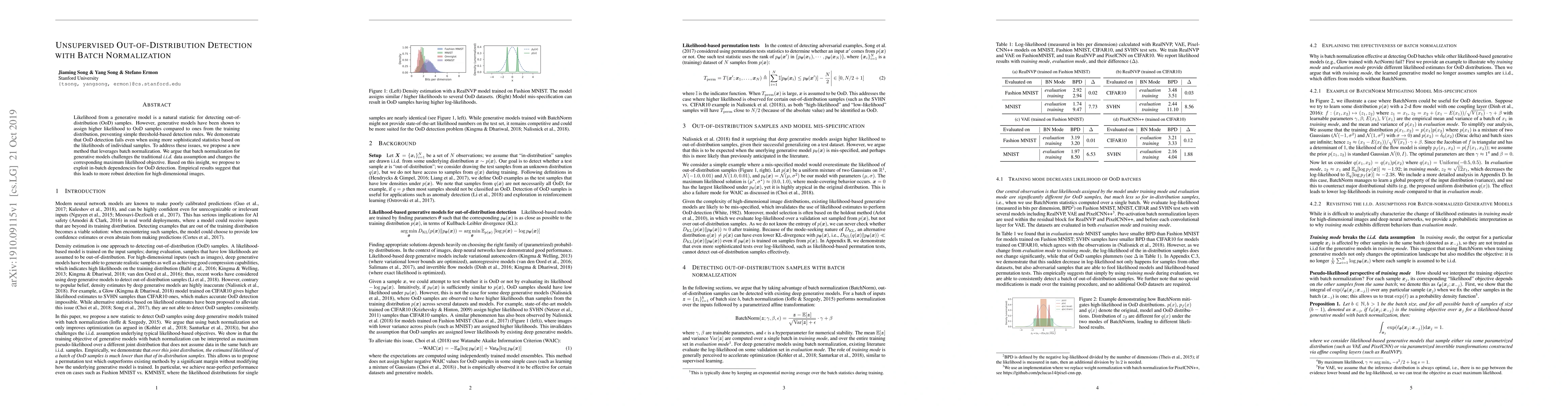 This paper proposes a novel method for unsupervised out-of-distribution detection using batch normalization, which leverages in-batch dependencies to improve detection accuracy for high-dimensional images, addressing the limitations of traditional likelihood-based approaches. Empirical results show enhanced robustness compared to existing methods.