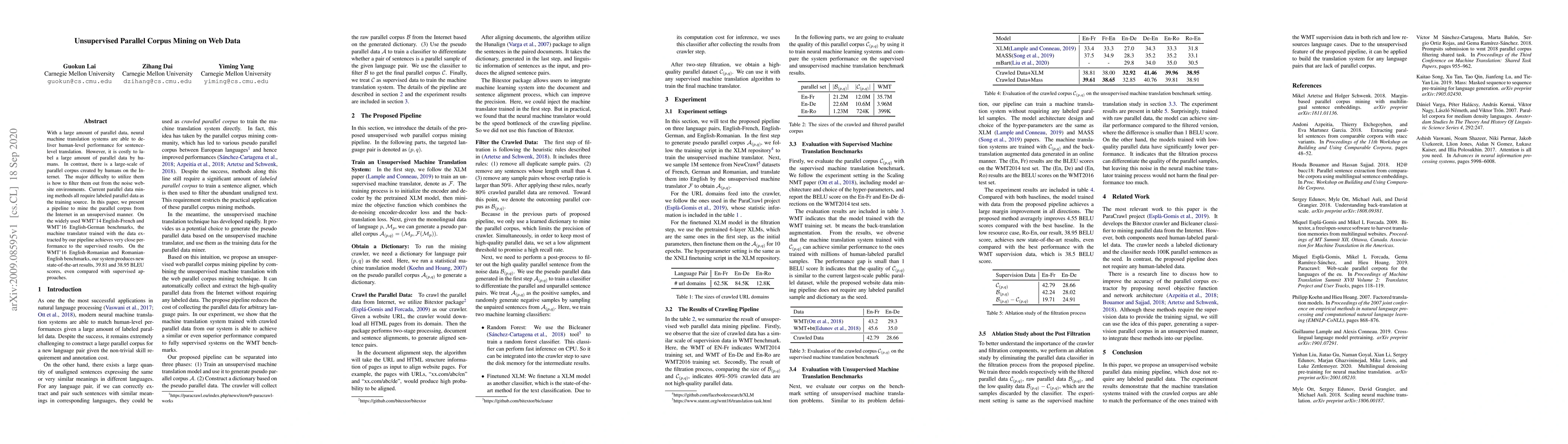This paper proposes an unsupervised method for mining parallel corpora from web data, achieving near-human level performance on translation benchmarks without requiring labeled training data. The method yields state-of-the-art results on certain benchmarks, demonstrating its effectiveness in extracting useful parallel data from noisy web sources.
