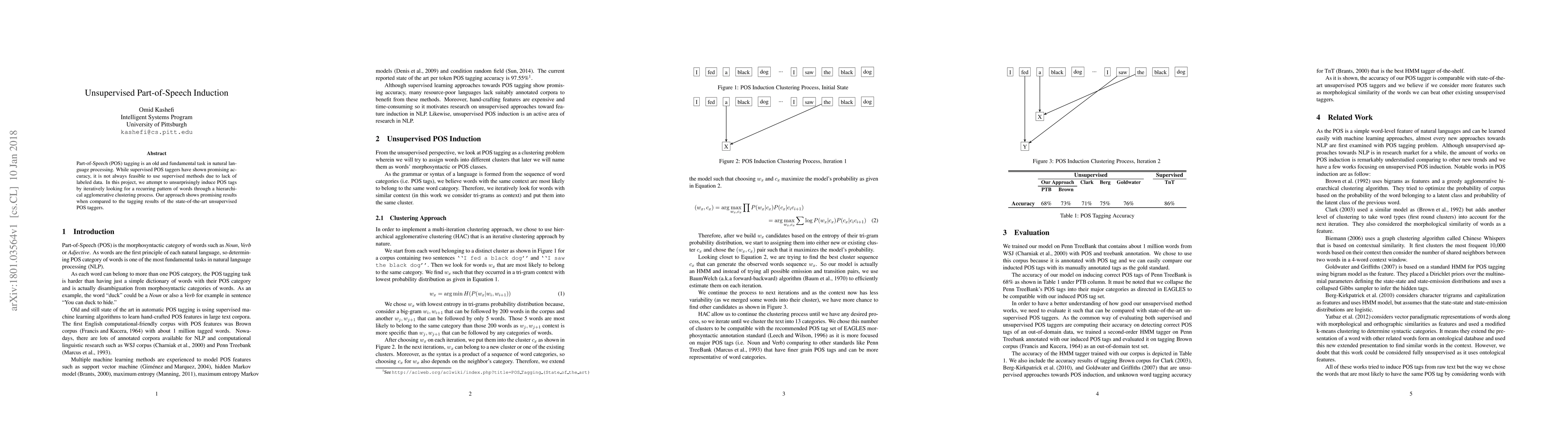 Part-of-Speech (POS) tagging is an old and fundamental task in natural language processing. While supervised POS taggers have shown promising accuracy, it is not always feasible to use supervised methods due to lack of labeled data. In this project, we attempt to unsurprisingly induce POS tags by iteratively looking for a recurring pattern of words through a hierarchical agglomerative clustering process. Our approach shows promising results when compared to the tagging results of the state-of-the-art unsupervised POS taggers.