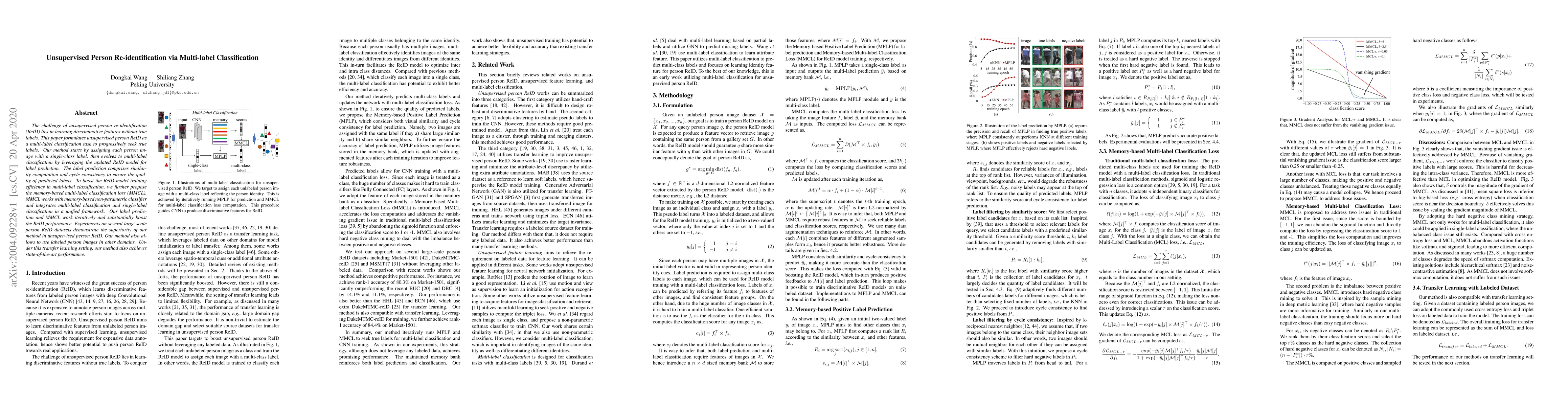 This paper proposes an unsupervised method for person re-identification by framing it as a multi-label classification task, iteratively refining labels through similarity computation and cycle consistency. The memory-based multi-label classification loss (MMCL) enhances training efficiency, leading to superior performance on large-scale datasets and transfer learning scenarios.
