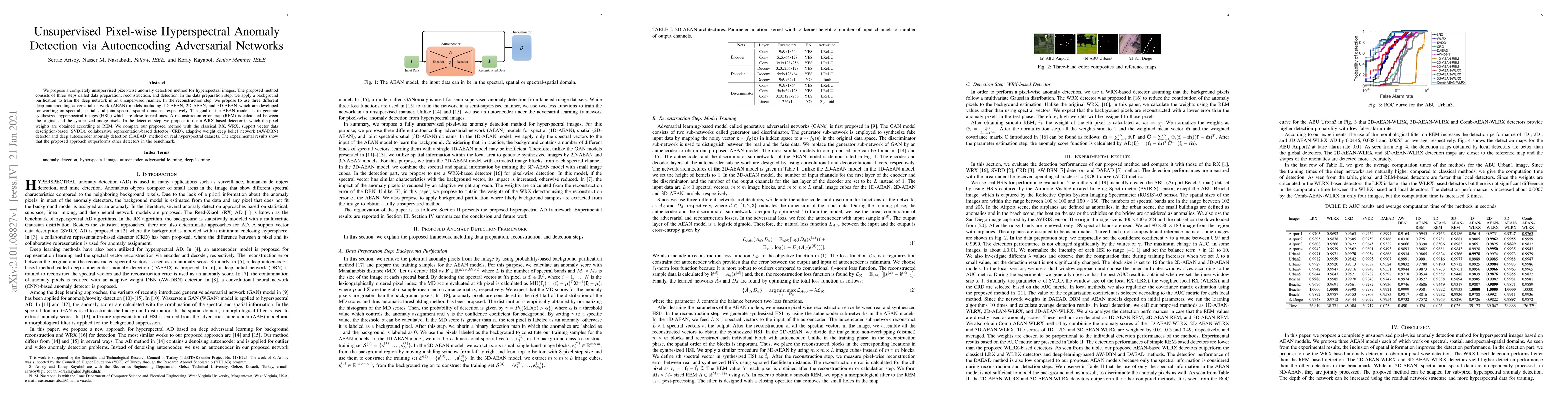 This paper proposes an unsupervised method for pixel-wise anomaly detection in hyperspectral images using autoencoding adversarial networks (AEAN). The method involves background purification, reconstruction with 1D, 2D, and 3D AEAN models, and detection using a WRX-based detector, outperforming classical and other deep learning-based detectors in experiments.