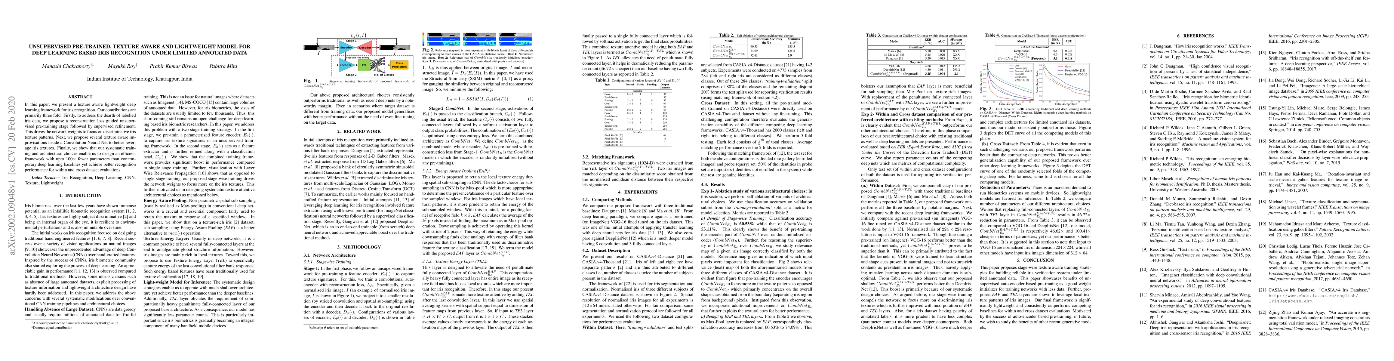 This paper introduces a lightweight, texture-aware deep learning model for iris recognition, utilizing unsupervised pre-training to address limited labeled data. The proposed framework achieves superior recognition performance with significantly fewer parameters compared to existing methods.