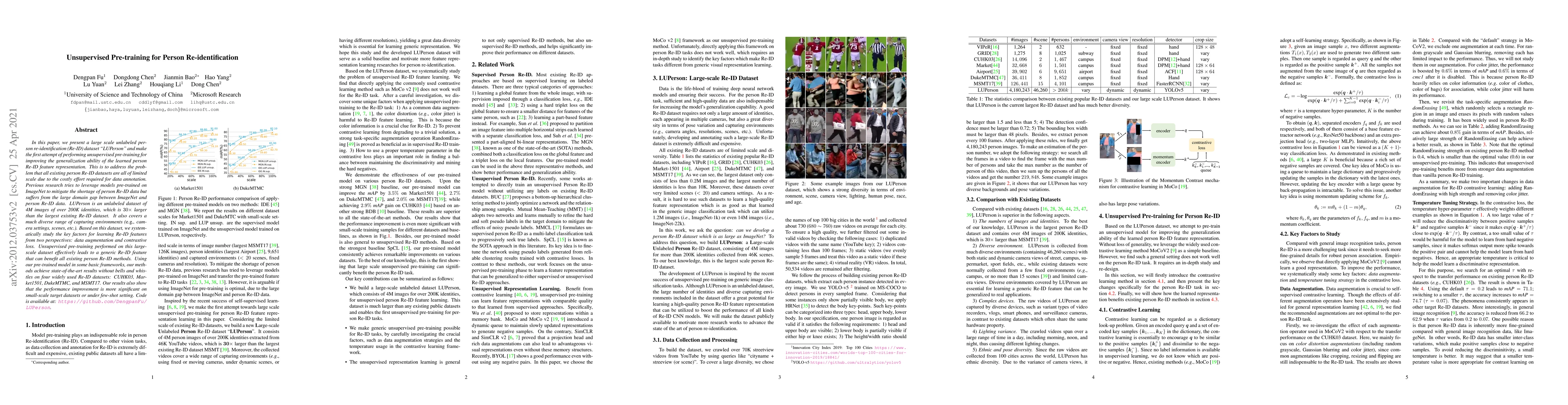 This paper introduces LUPerson, a large-scale unlabeled dataset for person re-identification, and explores unsupervised pre-training to enhance feature representation generalization. The study demonstrates that pre-training on LUPerson leads to state-of-the-art results on multiple Re-ID datasets, especially benefiting smaller or few-shot datasets.
