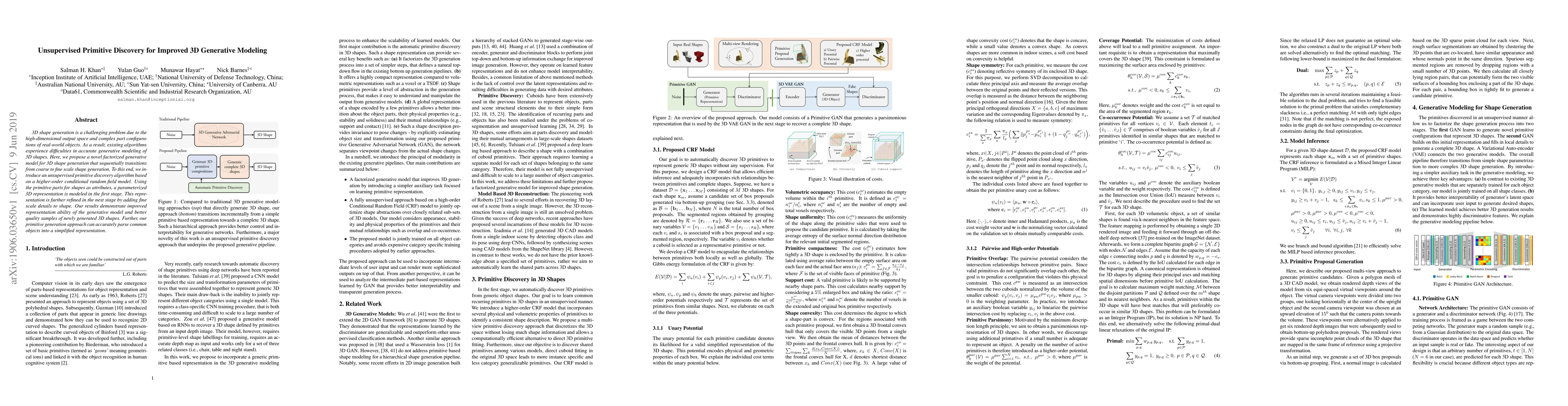 This paper proposes a novel generative model for 3D shape generation that improves upon existing algorithms by sequentially transitioning from coarse to fine scale shape generation. It introduces an unsupervised primitive discovery algorithm to parse objects into simplified parts, enhancing the model's representation ability and the quality of generated 3D shapes.