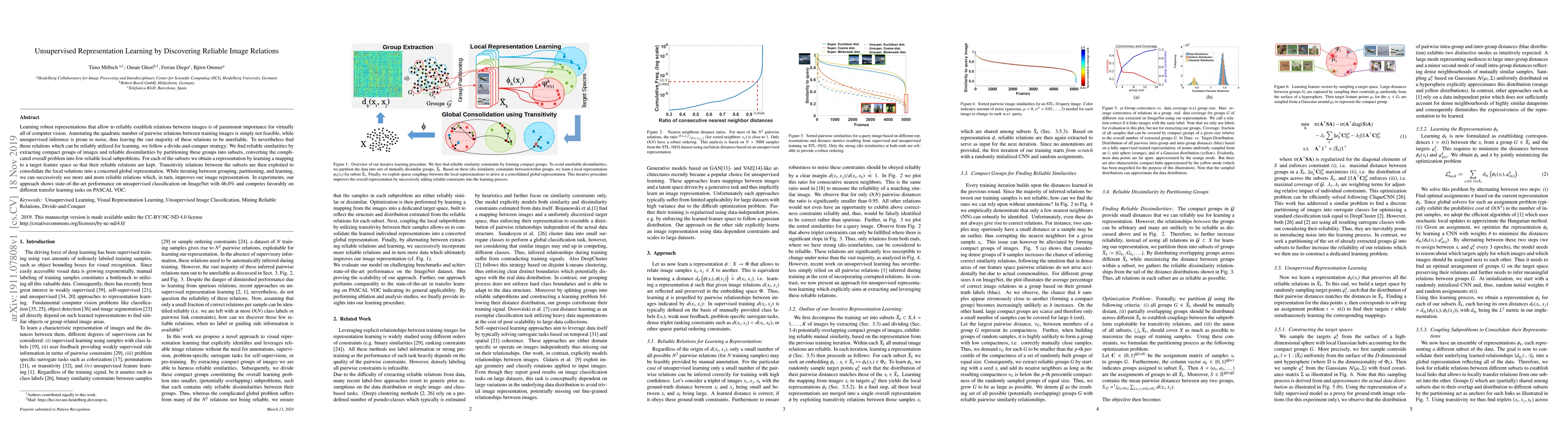 Learning robust representations that allow to reliably establish relations between images is of paramount importance for virtually all of computer vision. Annotating the quadratic number of pairwise relations between training images is simply not feasible, while unsupervised inference is prone to noise, thus leaving the vast majority of these relations to be unreliable. To nevertheless find those relations which can be reliably utilized for learning, we follow a divide-and-conquer strategy: We find reliable similarities by extracting compact groups of images and reliable dissimilarities by partitioning these groups into subsets, converting the complicated overall problem into few reliable local subproblems. For each of the subsets we obtain a representation by learning a mapping to a target feature space so that their reliable relations are kept. Transitivity relations between the subsets are then exploited to consolidate the local solutions into a concerted global representation. While iterating between grouping, partitioning, and learning, we can successively use more and more reliable relations which, in turn, improves our image representation. In experiments, our approach shows state-of-the-art performance on unsupervised classification on ImageNet with 46.0% and competes favorably on different transfer learning tasks on PASCAL VOC.