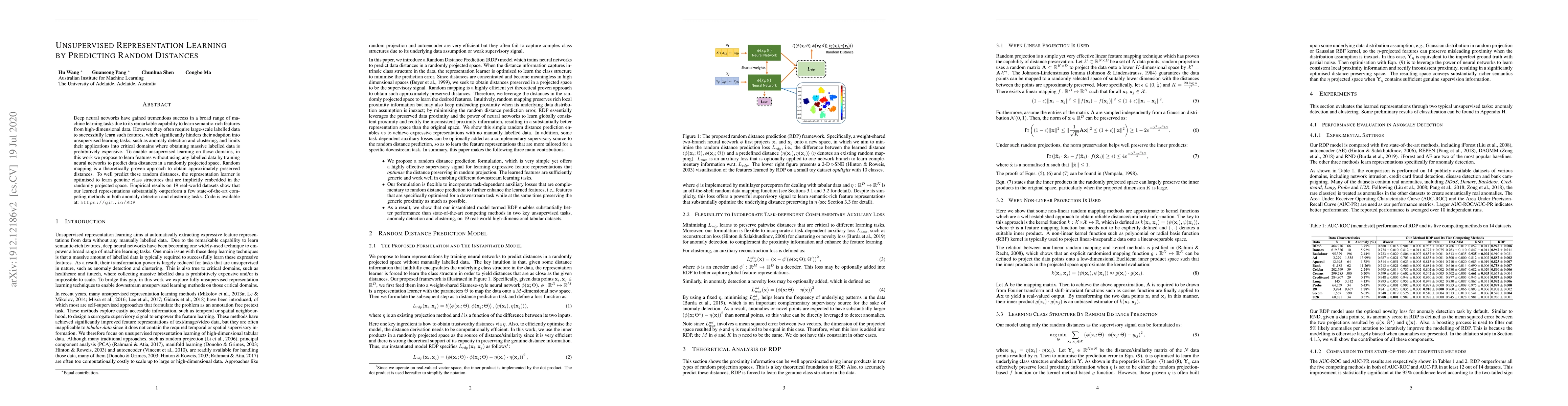 Researchers propose a new method to learn features without labelled data by training neural networks to predict distances in a randomly projected space, achieving superior performance in anomaly detection and clustering tasks.