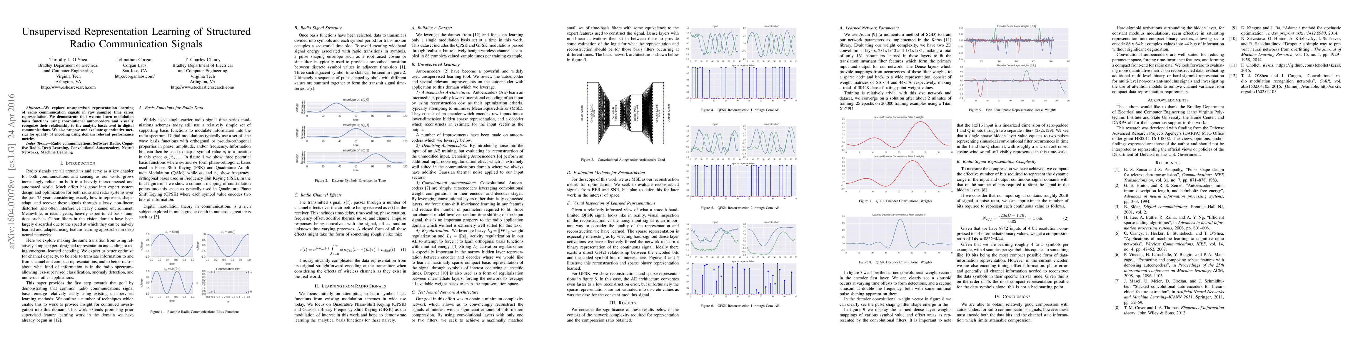 Researchers developed a new method for learning hidden patterns in radio signals without labeled data, using convolutional autoencoders to identify modulation basis functions. They also created metrics to evaluate the quality of these learned representations.
