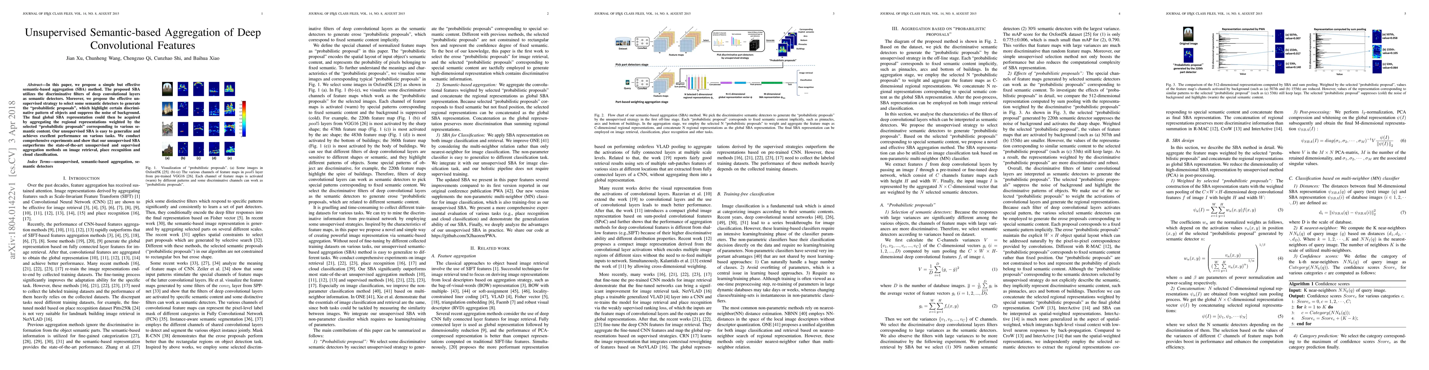 This paper introduces an unsupervised semantic-based aggregation method that leverages discriminative filters from deep convolutional layers to generate "probabilistic proposals" highlighting object patterns and suppressing background noise, achieving superior performance in image retrieval, place recognition, and cloud classification.