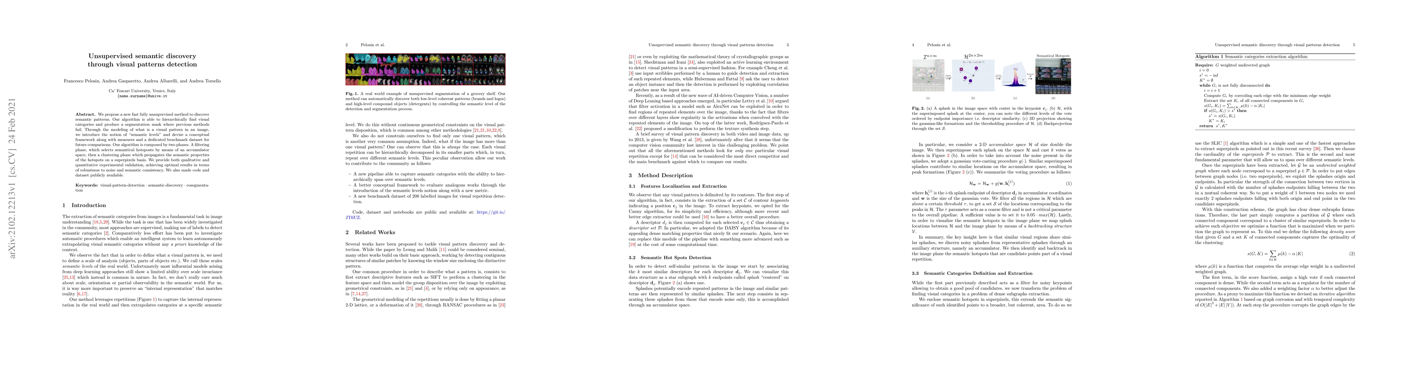 This paper introduces a fast, fully unsupervised method for discovering semantic patterns in images by detecting visual categories, achieving hierarchical segmentation. The proposed algorithm uses a filtering phase to identify hotspots and a clustering phase to propagate semantic properties, validated through both qualitative and quantitative experiments.