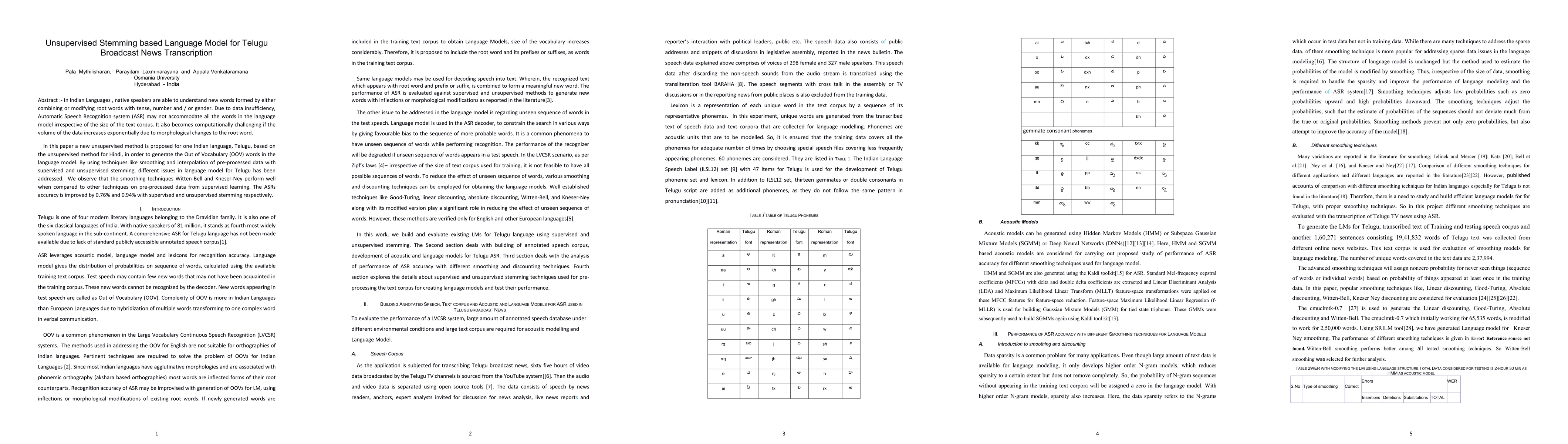 In Indian Languages , native speakers are able to understand new words formed by either combining or modifying root words with tense and / or gender. Due to data insufficiency, Automatic Speech Recognition system (ASR) may not accommodate all the words in the language model irrespective of the size of the text corpus. It also becomes computationally challenging if the volume of the data increases exponentially due to morphological changes to the root word. In this paper a new unsupervised method is proposed for a Indian language: Telugu, based on the unsupervised method for Hindi, to generate the Out of Vocabulary (OOV) words in the language model. By using techniques like smoothing and interpolation of pre-processed data with supervised and unsupervised stemming, different issues in language model for Indian language: Telugu has been addressed. We observe that the smoothing techniques Witten-Bell and Kneser-Ney perform well when compared to other techniques on pre-processed data from supervised learning. The ASRs accuracy is improved by 0.76% and 0.94% with supervised and unsupervised stemming respectively.
