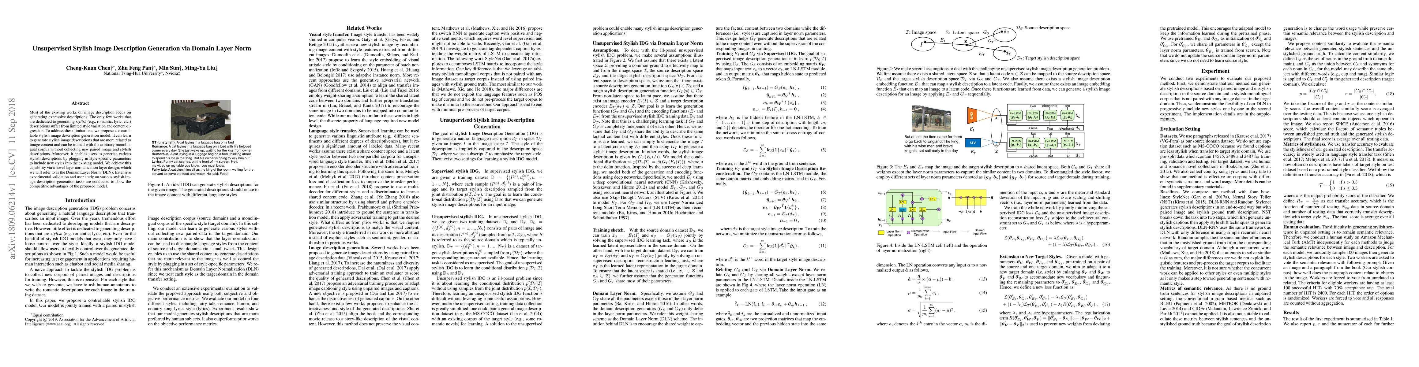 This paper proposes a novel model for generating stylish image descriptions using a Domain Layer Norm (DLN) to enhance style variation and content relevance without requiring paired image-description datasets. The model demonstrates competitive performance in generating diverse stylish descriptions via style-specific parameters.