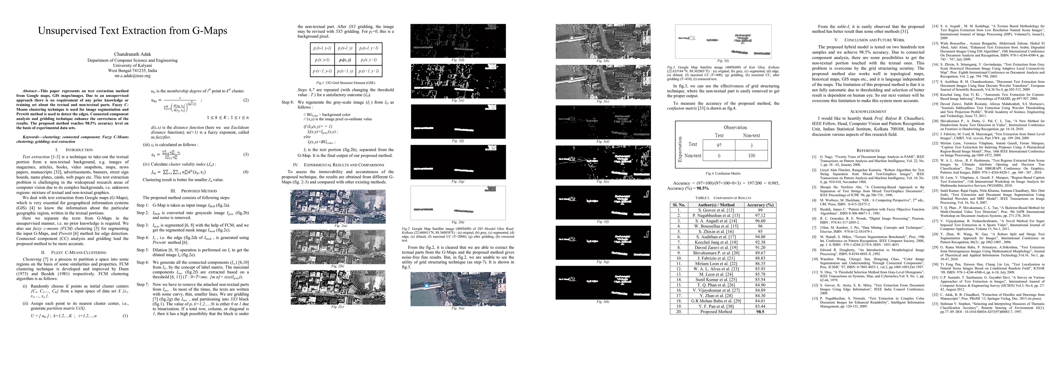 This paper proposes an unsupervised text extraction method from Google Maps using Fuzzy CMeans clustering and Prewitt edge detection, achieving 98.5% accuracy.